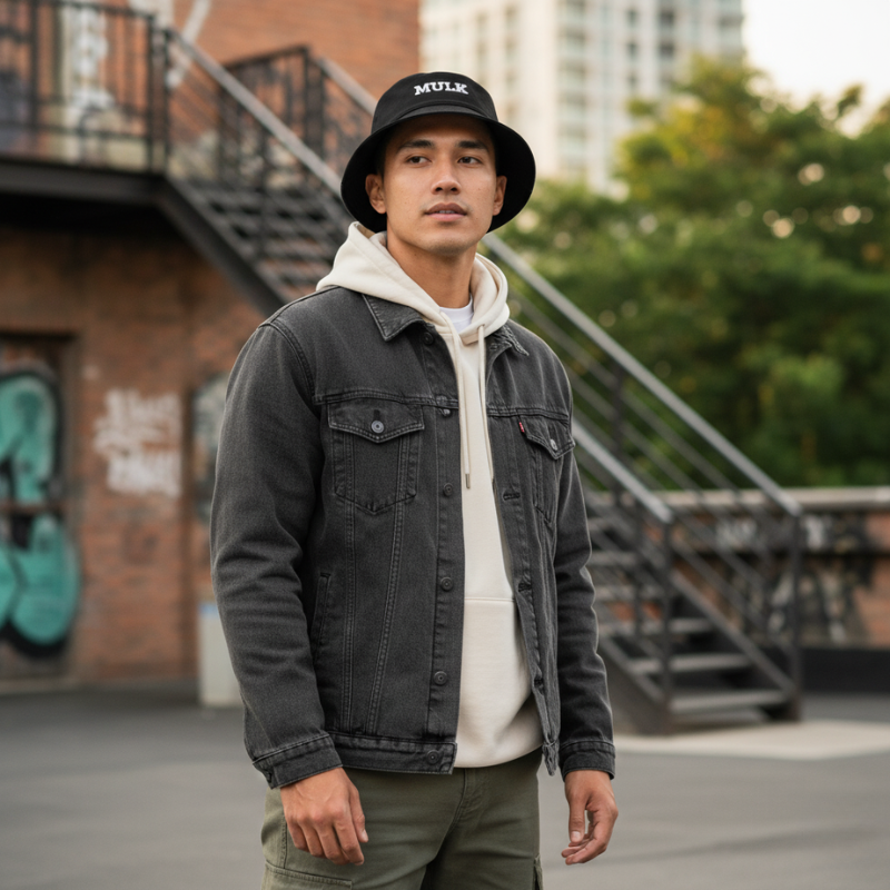 A minimalist and premium black bucket hat featuring high-quality embroidered MULK branding. Lightweight, comfortable, and crafted for everyday streetwear style. Perfect for sun protection, casual outings, and completing your MULK essentials look.