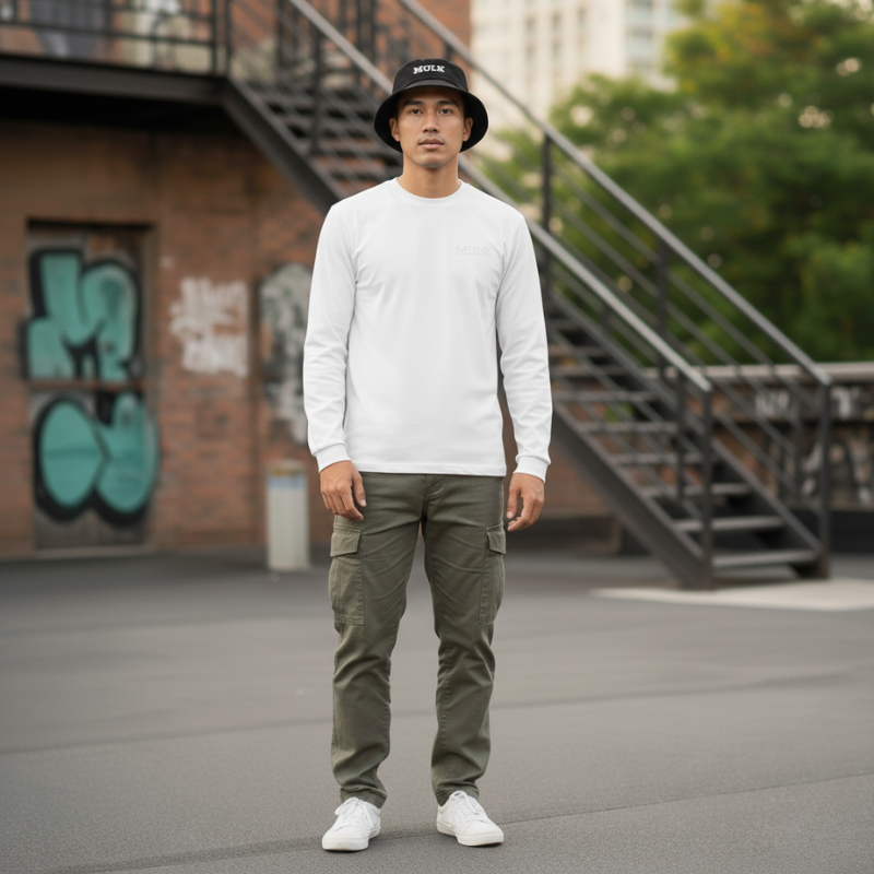 Designed for clean streetwear lovers, this MULK Long Sleeve T-Shirt features subtle tone-on-tone embroidery—the “MULK” logo stitched in the same color as the shirt. The result is a refined, minimalist aesthetic that fits any outfit.